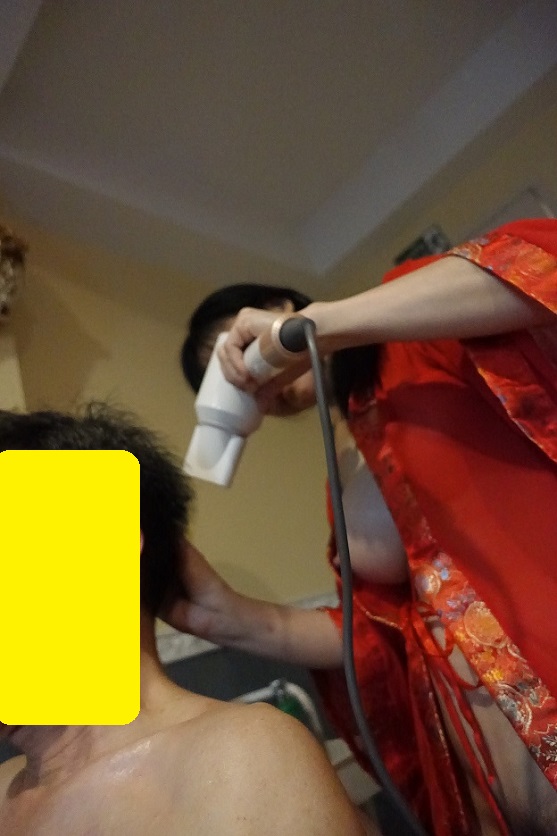 เป่าผมจนแห้ง ไดร์ผมจัดทรงเรียบร้อย แล้วก็เชิญให้ไปนอนรอ บนเตียงนวดแผนไทยต่อ